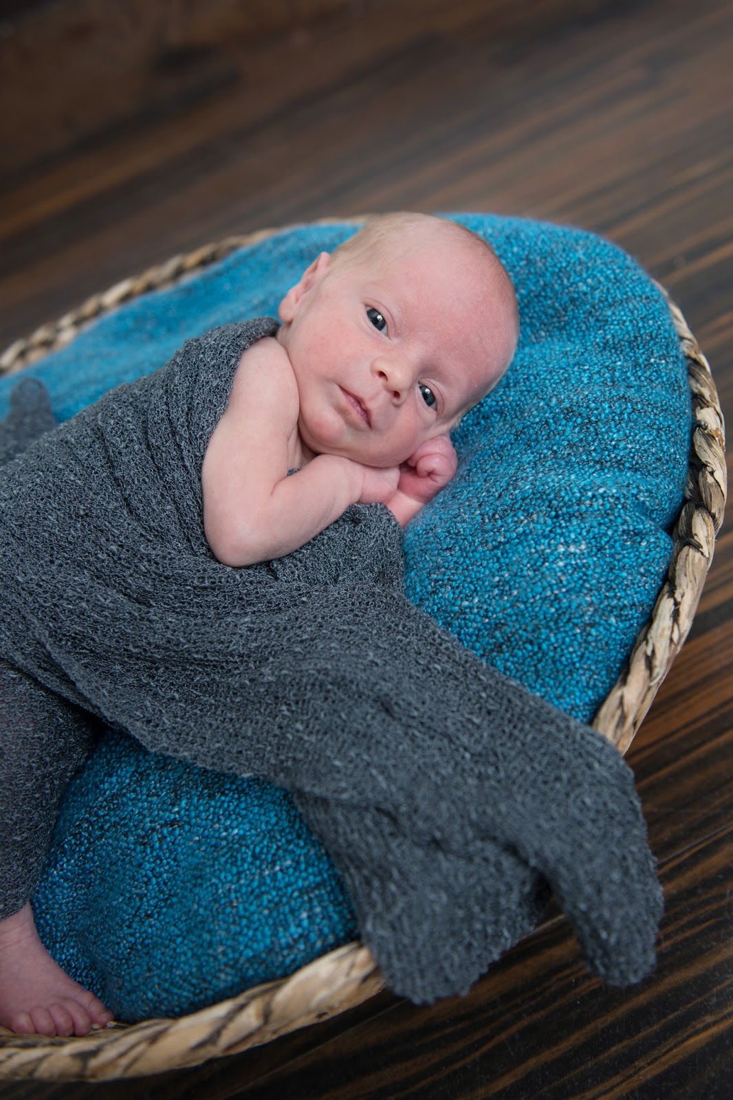 At the beginning of May, I had Sam's newborn pictures taken. There is an incredible family in our Stake and she takes incredible pictures. I met her at a studio downtown and Sam did pretty well. He was sound asleep on the drive and while we were getting everything set up and then was quite awake. I had to keep putting his binkie in and then I'd pull it out and he'd sleep for several seconds before opening his eyes again.